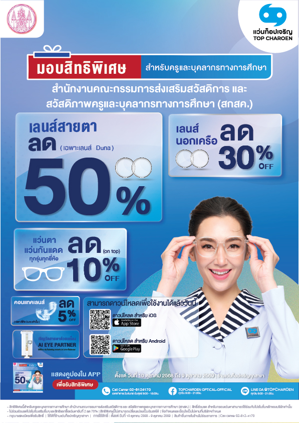เพิ่มส่งเสริมสวัสดิการ สิทธิประโยชน์ มีคุณภาพชีวิตที่ยั่งยืน และเพื่อสุขภาพสายตาให้แก่ครูและบุคลากรทางการศึกษาทั่วประเทศ โดยมอบส่วนลดพิเศษรวมถึงสิทธิประโยชน์ ดังนี้