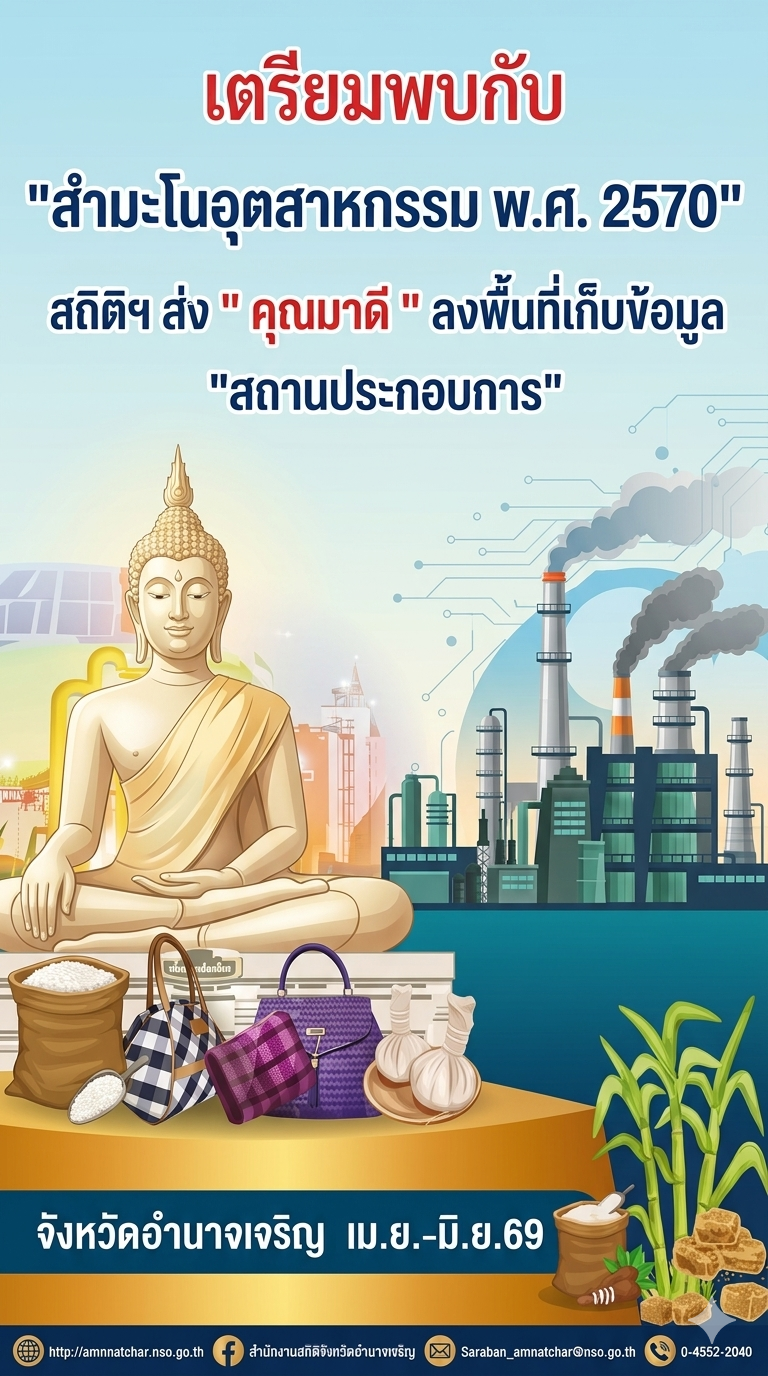 สำนักงานสถิติแห่งชาติเตรียมจัดทำ "สำมะโนธุรกิจและอุตสาหกรรม" เพื่อเก็บรวบรวมข้อมูลสถานประกอบการทั่วประเทศ ทั้งการค้า บริการ และผลิต ซึ่งจะใช้เป็นฐานข้อมูลพัฒนาเศรษฐกิจ เตรียมพบกับกิจกรรมแจงนับรายละเอียด เพื่อยกระดับศักยภาพเศรษฐกิจไทยในระยะยาว ซึ่งจะมีการประชาสัมพันธ์ข้อมูลผ่านสื่อต่างๆ อย่างทั่วถึง สาระสำคัญของสำมะโนธุรกิจและอุตสาหกรรม: วัตถุประสงค์: เพื่อให้ภาครัฐมีข้อมูลพื้นฐานที่ทันสมัย สำหรับวางแผนพัฒนาเศรษฐกิจ และสนับสนุนการตัดสินใจของผู้ประกอบการ ขอบข่าย: ครอบคลุมธุรกิจทางการค้า, บริการ, อุตสาหกรรมการผลิต, การจัดหา/บำบัดน้ำเสีย, ก่อสร้าง, และคลังสินค้า ขั้นตอนการดำเนินงาน: การนับจด (ขั้นตอนที่ 1): เก็บข้อมูลพื้นฐานสถานประกอบการทุกประเภททั่วประเทศ การแจงนับ (ขั้นตอนที่ 2): เก็บข้อมูลรายละเอียดจากสถานประกอบการที่กำหนด ความลับ: ข้อมูลที่จัดเก็บจะถูกเก็บเป็นความลับ ตามพระราชบัญญัติสถิติ พ.ศ. 2550