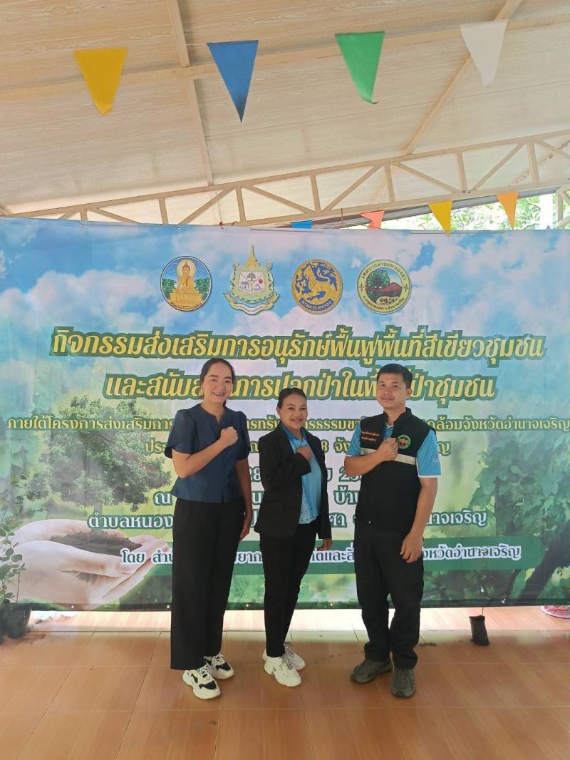 รายละเอียด : 28 สิงหาคม 2568 นายกเทศมนตรีปทุมราชวงศา มอบหมายให้เลขานุการนายกเทศมนตรี พร้อมด้วย กองสาธารณสุขและสิ่งแวดล้อม เข้าร่วมกิจกรรมสนับสนุนการอนุรักษ์ฟื้นฟูพื้นที่สีเขียวและสนับสนุนการปลูกป่าในพื้นที่ป่าชุมชน ภายใต้โครงการส่งเสริมการบริหารจัดการทรัพยากรธรรมชาติและสิ่งแวดล้อมจังหวัดอำนาจเจริญ ณ วัดป่าชุมชนเจริญจิต บ้านหนองข่า ตำบลหนองข่า อำเภอปทุมราชวงศา จังหวัดอำนาจเจริญ