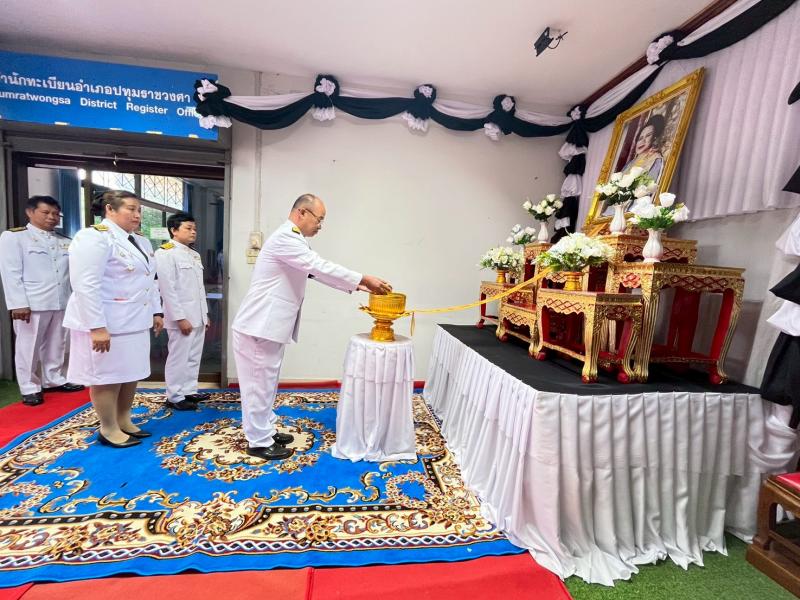 รายละเอียด : เทศบาลตำบลปทุมราชวงศา โดยนายธรรมศาสตร์ โพธิ นายกเทศมนตรี พร้อมคณะบริหาร สมาชิกสภาเทศบาล ร่วมพิธีขอน้อมถวายความอาลัย ต่อการเสด็จสวรรคต