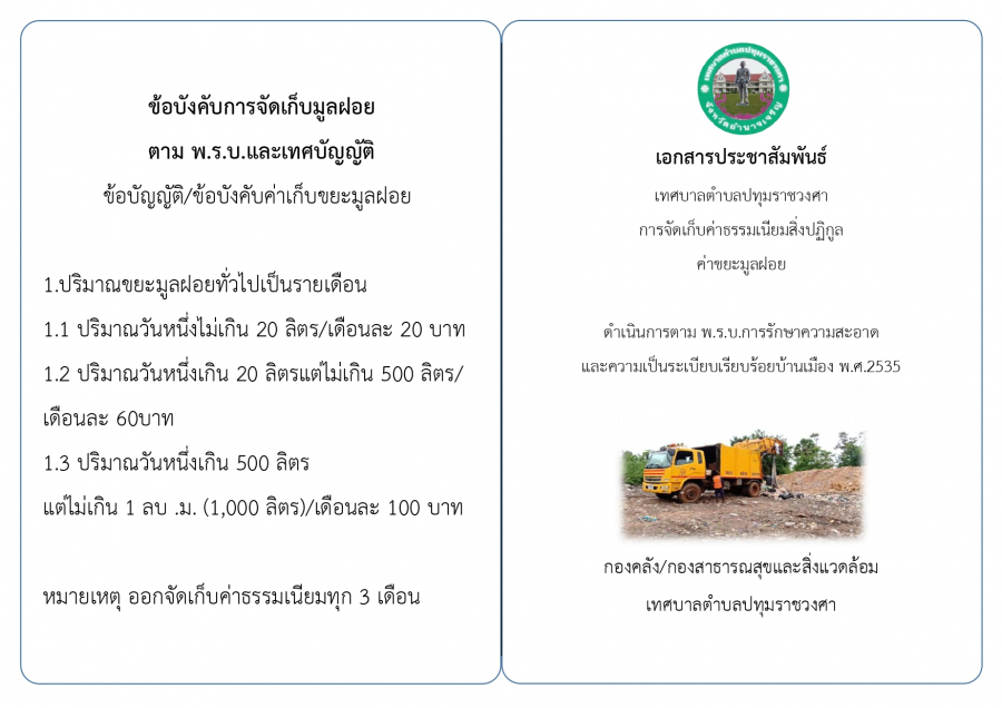 การจัดเก็บค่าธรรมเนียมสิ่งปฏิกูล ค่าขยะมูลฝอย