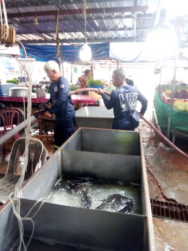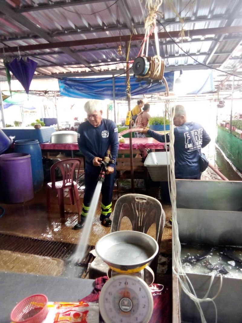 รายละเอียด : นายธรรมศาสตร์ โพธิ นายกเทศมนตรีตำบลปทุมราชวงศา มอบหมายให้ กองสาธารณสุขและสิ่งแวดล้อม ร่วมกับ งานป้องและบรรเทาสาธารณภัย และกองช่าง นำเจ้าหน้าที่พร้อมอุปกรณ์เข้าปฏิบัติงาน ปรับปรุงภูมิทัศน์ ภายในตลาดสดเทศบาลฯ โดยดำเนินการล้าง ทำความสะอาด บริเวณตลาดสดเทศบาลฯ และขุดลอกคลองระบายน้ำ บริเวณทางเข้าตลาดสด เพื่อเป็นการรักษาและเกิดความสะอาดของตลาดสดฯ ตามหลักสุขาภิบาล ป้องกันและปราศจากเชื้อโรคต่างๆ มีความเป็นระเบียบเรียบร้อยและถูกสุขลักษณะสำหรับประชาชนผู้มาจับจ่ายใช้สอย