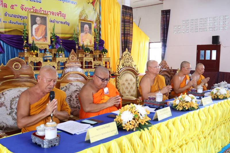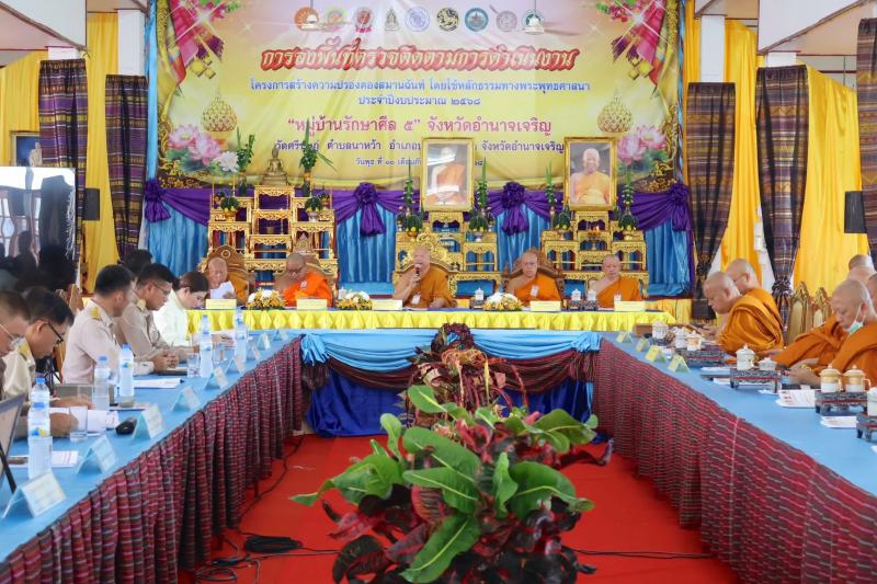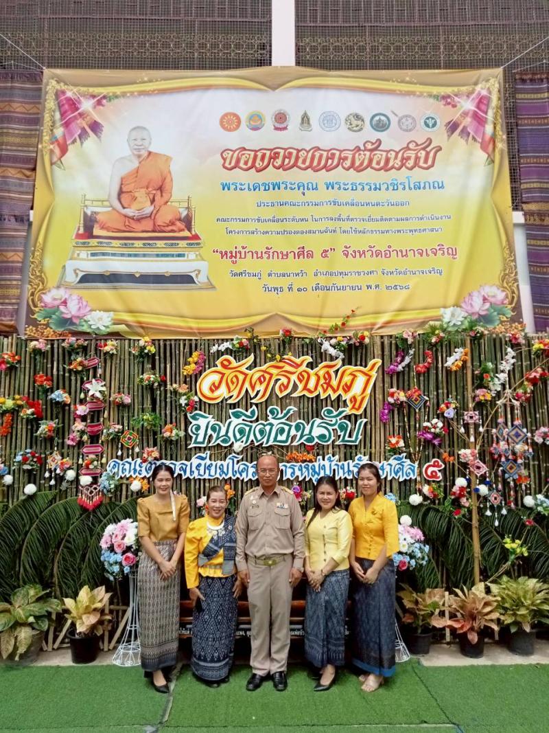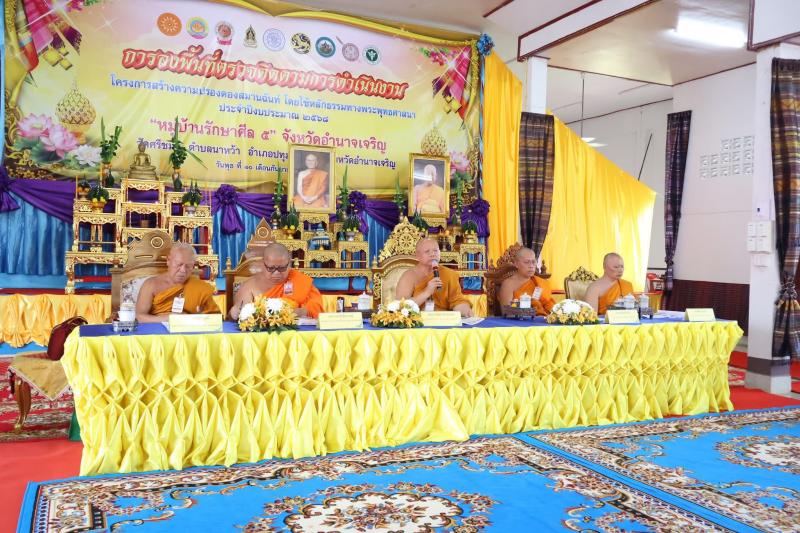 รายละเอียด : วันที่ 10 กันยายน 2568 เวลา 12.30 น. พระราชพัฒนวัชรบัณฑิต (พระ-ราด-พัด-ทะ-นะ-วัด-ชะ-ระ-บัน-ดิด) รองประธานคณะกรรมการขับเคลื่อนโครงการสร้างความปรองดองสมานฉันท์ โดยใช้หลักธรรมทางพระพุทธศาสนา “หมู่บ้านรักษาศีล 5” ประจำหนตะวันออก พร้อมด้วย คณะกรรมการฯ ลงพื้นที่ตรวจเยี่ยมและติดตามผลการดำเนินงานโครงการ ที่วัดศรีชมภู่ บ้านนาหว้า ตำบลนาหว้า อำเภอปทุมราชวงศา จังหวัดอำนาจเจริญ โดยมี พระครูสิริสีลวัตร เจ้าคณะจังหวัดอำนาจเจริญ และ พระครูถาวรศาสนคุณ เจ้าคณะจังหวัดอำนาจเจริญ (ธ) นายเสนีย์ ส้มเขียวหวาน รองผู้ว่าราชการจังหวัดอำนาจเจริญ หัวหน้าส่วนราชการ หน่วยงานภาครัฐ เอกชน ภาคีเครือข่าย และชุมชน เข้าร่วมถวายการต้อนรับ ????นายเสนีย์ ส้มเขียวหวาน รองผู้ว่าราชการจังหวัดอำนาจเจริญ ได้รายงานต่อคณะกรรมการขับเคลื่อนโครงการสร้างความปรองดองสมานฉันท์ โดยใช้หลักธรรมทางพระพุทธศาสนา "หมู่บ้านรักษาศีล 5" ว่า จังหวัดอำนาจเจริญ จัดตั้งขึ้นเมื่อวันที่ 1 ธันวาคม 2536 โดยแยกออกจากจังหวัดอุบลราชธานี และจัดตั้งเป็นจังหวัดที่ 75 ของประเทศไทย มีเนื้อที่ทั้งสิ้น 1,975,780 ไร่ หรือ 3,166,129 ตารางกิโลเมตร จังหวัดอำนาจเจริญ แบ่งเขตการปกครองเป็น 7 อำเภอ 56 ตำบล และ 607 หมู่บ้าน ประกอบด้วย อำเภอเมืองอำนาจเจริญ, หัวตะพาน, ชานุมาน, ลืออำนาจ, พนา, เสนางคนิคม และอำเภอปทุมราชวงศา ????สำหรับ การดำเนินงานขับเคลื่อนโครงการสร้างความปรองดองสมานฉันท์ โดยใช้หลักธรรมทางพระพุทธศาสนา "หมู่บ้านรักษาศีล 5" จังหวัดอำนาจเจริญ และคณะสงฆ์จังหวัดอำนาจเจริญ ตลอดทั้งหน่วยงานภาครัฐ เอกชน ภาคีเครือข่ายและชุมชน ได้ร่วมกันขับเคลื่อนอย่างเข้มแข็งและต่อเนื่องมาโดยตลอด ตามแผนยุทธศาสตร์ชาติ 20 ปี และตามหลักปรัชญาเศรษฐกิจพอเพียง พร้อมทั้งหลักธรรมทางพระพุทธศาสนา เพื่อพัฒนาคุณภาพชีวิตของประชาชนทุกระดับสู่ความมั่นคง มั่งคั่ง อย่างยั่งยืน ????ส่วนกิจกรรมวันนี้ นอกจากมีการนำเสนอผลการดำเนินงานของหมู่บ้านรักษาศีล 5 และการจัดแสดงผลิตภัณฑ์และสินค้าของชุมชน ซึ่งสะท้อนถึงพลังความร่วมมือและการมีส่วนร่วมของประชาชนในการพัฒนาพื้นที่อย่างเป็นรูปธรรมแล้ว ยังมีการจัดแสดงนิทรรศการ “ธรรมนาวา วัง” อีกด้วย
