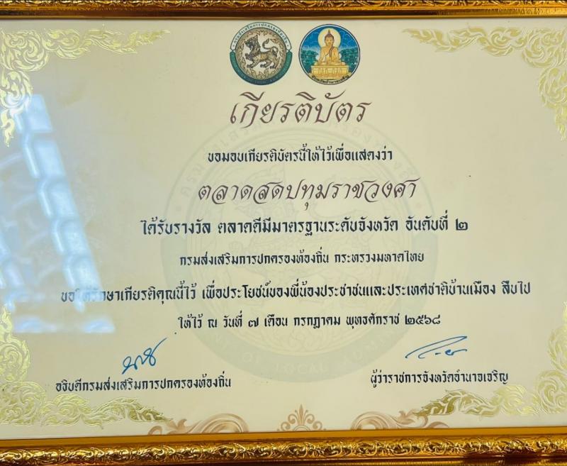 รับรางวัลชนะเลิศ อันดับที่ 2 “ตลาดดีมีมาตรฐานขององค์กรปกครอง- ส่วนท้องถิ่น” ประจำปี 2568 ระดับจังหวัด