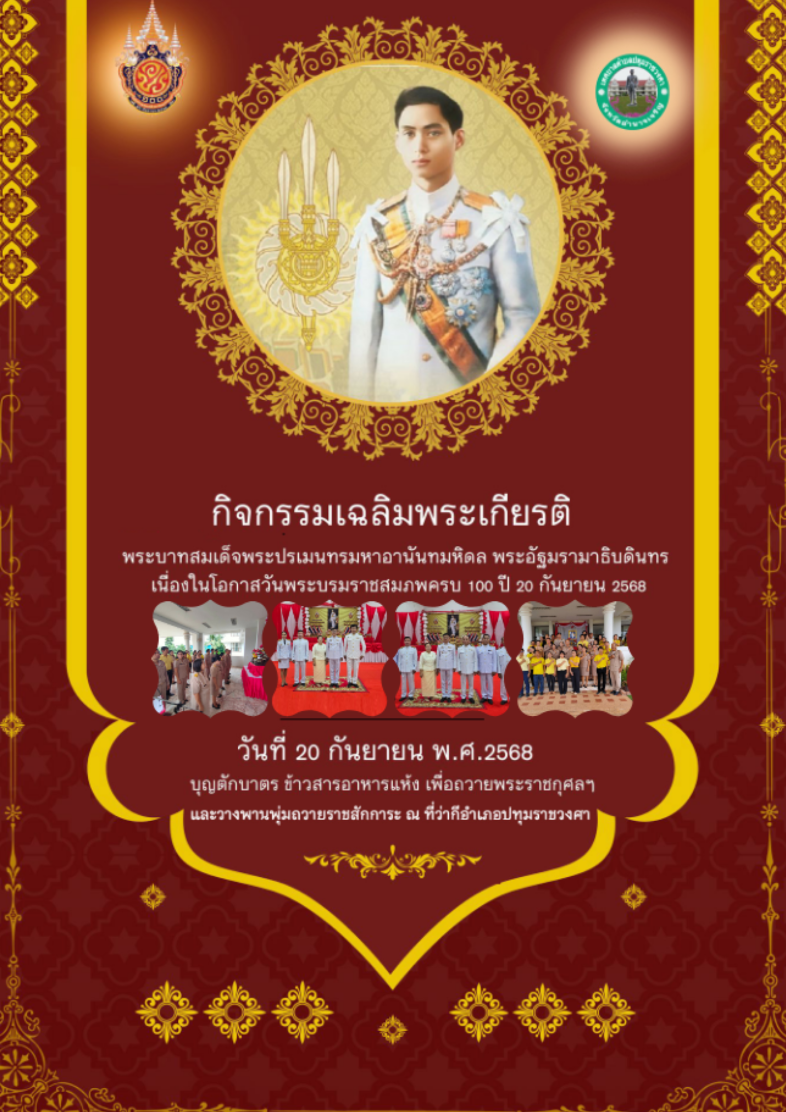 กิจกรรมเฉลิมพระเกียรติ พระบาทสมเด็จพระปรเมนทรมหาอานันทมหิดล พระอัฐมรามาธิบดินทร เนื่องในโอกาสวันพระบรมราชสมภพครบ 100 ปี [22 กันยายน 2568]