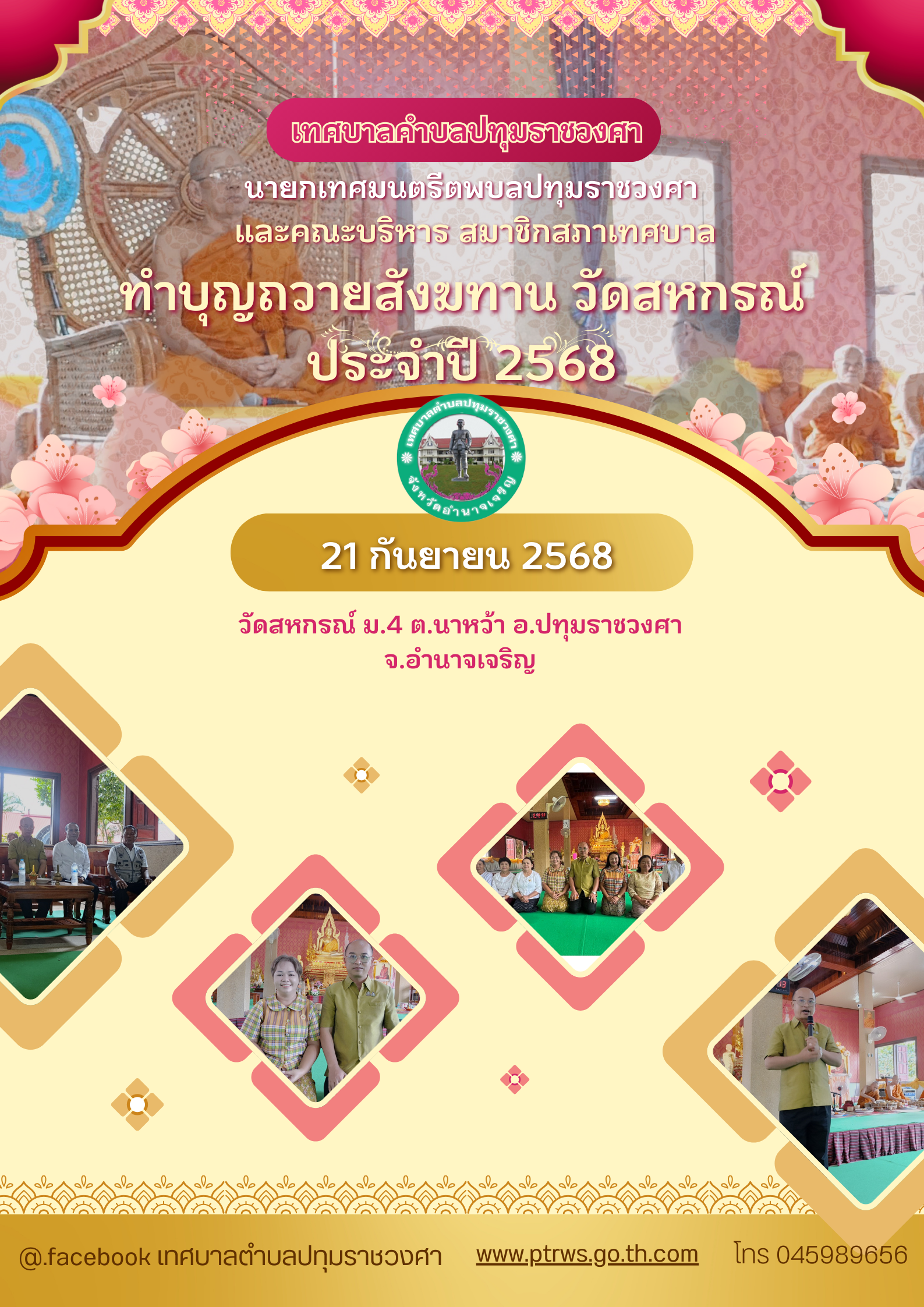 ยินดีต้อนรับ เข้าสู่เว็บไซต์ เทศบาลตำบลปทุมราชวงศา อำเภอปทุมราชวงศา จังหวัดอำนาจเจริญ