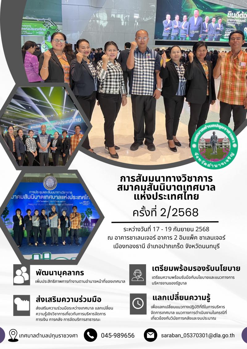 การจัดประชุม และการสัมมนาทางวิชาการสมาคมสันนิบาตเทศบาลแห่งประเทศไทย ครั้งที่ 2/2568 [18 กันยายน 2568]