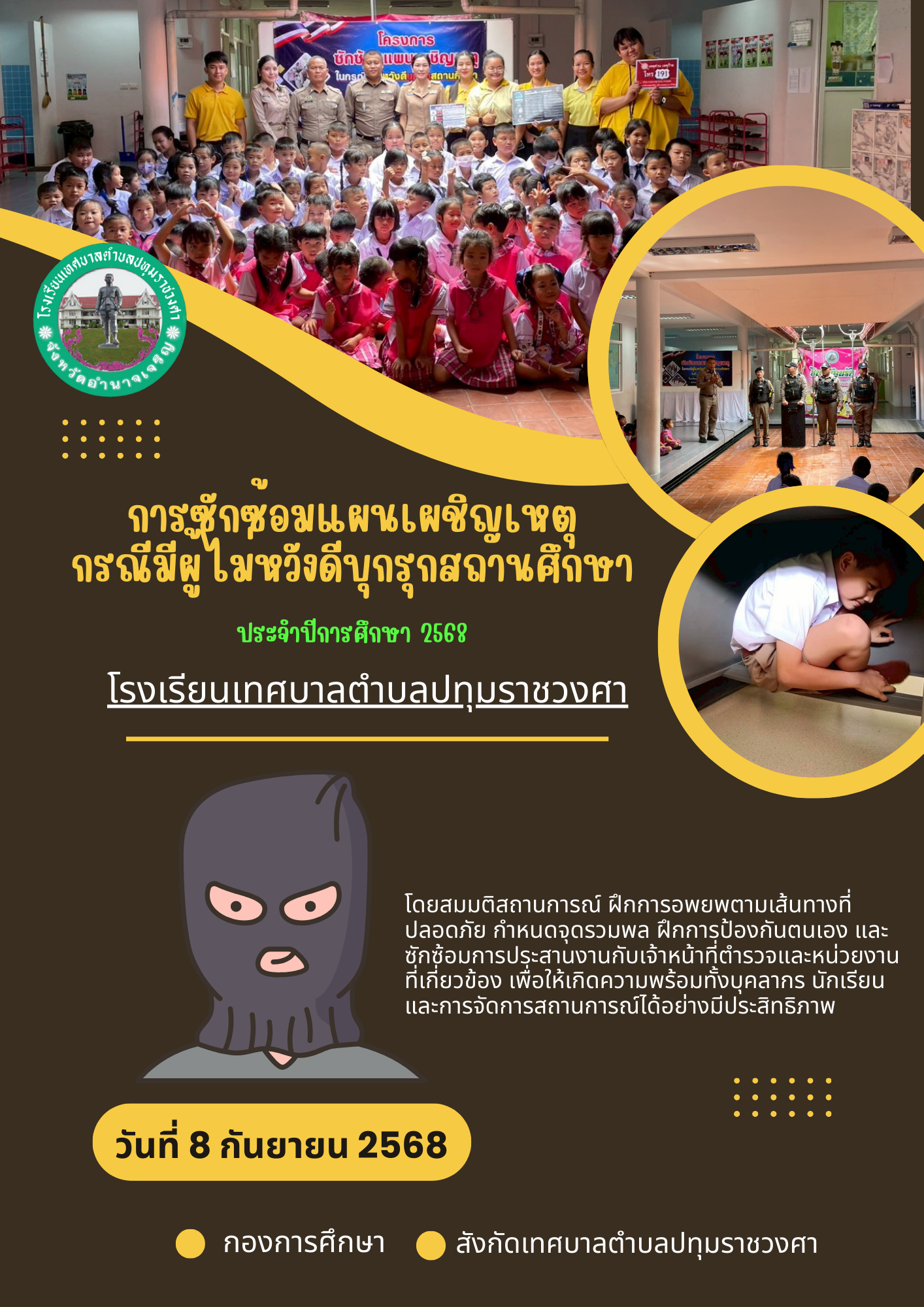 การซักซ้อมแผนเผชิญเหตุกรณีผู้ไม่หวังดีบุกรุกสถานศึกษา ประจำปี 2568 [8 กันยายน 2568]
